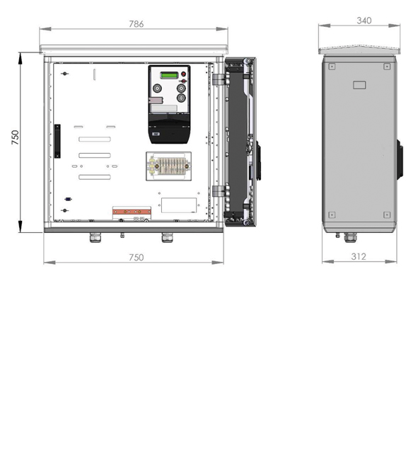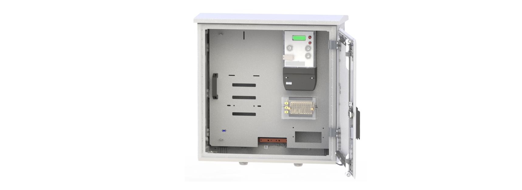 - Panel de poliéster abatible y troquelado para montaje del equipo integral de medida.