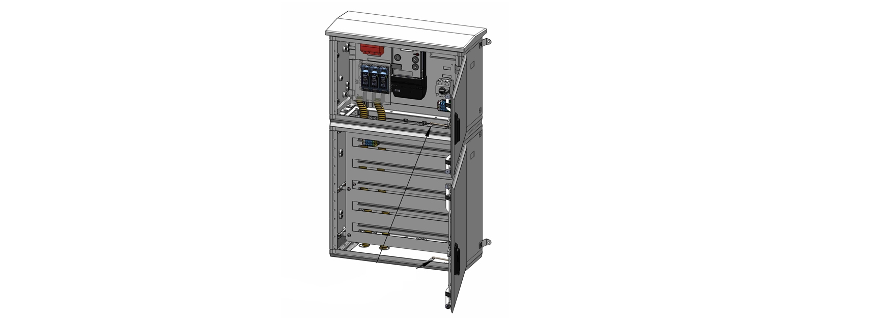 - Armario de mando y control para instalación sobre zócalo, alimentando suministros en la vía pública que precisen de espacio para instalar dispositivos de mando/control (alumbrados, semáforos, marquesinas, etc…)