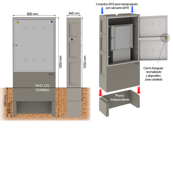 - Suministrado con peana especial obligatoria por la Compañía E-distribución.